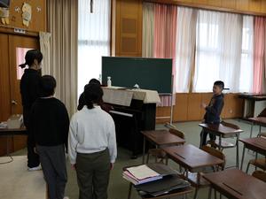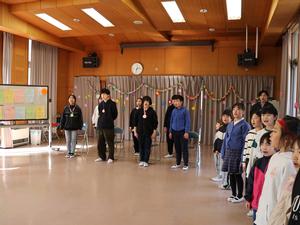 一方1~5年生は、昼放課の時間を使って木曜日に行われる「卒業を祝う会」の練習をしていました。