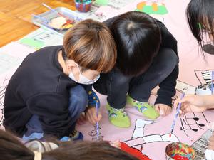 みんなで協力して、色を塗っていきます。細かいところも丁寧に塗りました。