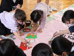 今日の午後、1年生から6年生の夏っ子みんなで、今年の「のぼり」を作りました。