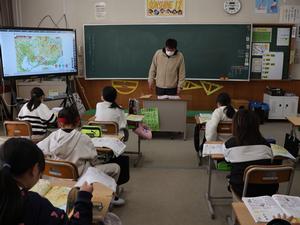 続いて、3・4年生。郷土の英雄である徳川家康公について学ぶ、「家康学習」の授業です。