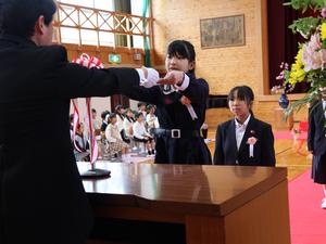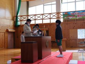 最初に校長先生から修了証を受け取ります。みんな1年間よく頑張りました。