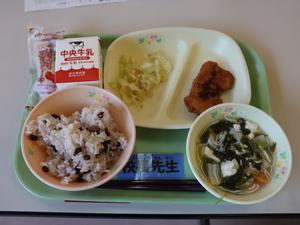 今日の献立は、お赤飯やイチゴケーキなど「卒業お祝いメニュー」でした。