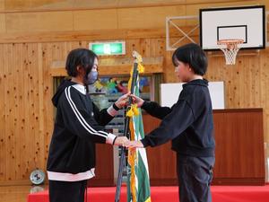 下級生にメッセージが伝えられた後、団旗等が新しい団長・副団長に引き渡されました。