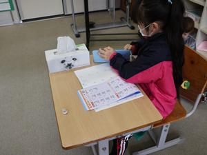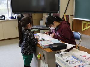 1・2年生は算数かな。ドリルの最後にある計算問題を一生懸命解いていました。