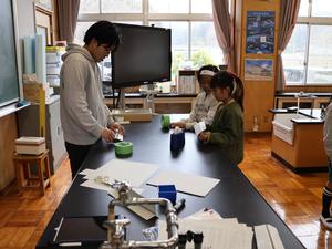 3・4年生は理科の授業で、金属球を使って何やら実験をしています。