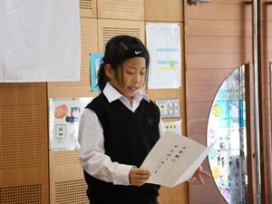 その後、代表の夏っ子が「3学期にがんばったこと」を発表します。