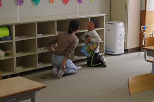 入学したての1年生も、そんな学校のお兄さんやお姉さん姿を見たり、教えてもらったりしながら一生懸命掃除をしていました。