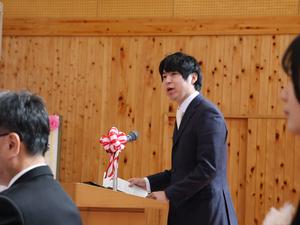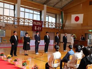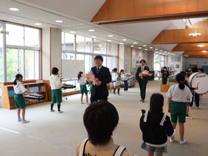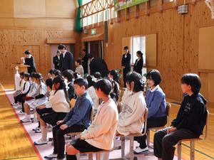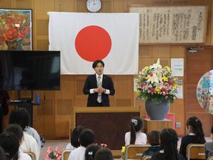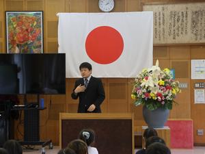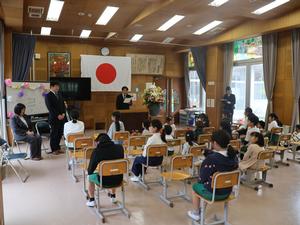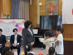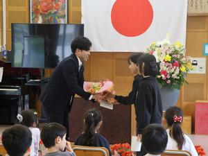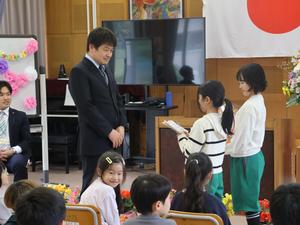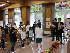 今日は退任式。今年、新しい学校に異動された三名の先生が夏山小に来てくださいました。