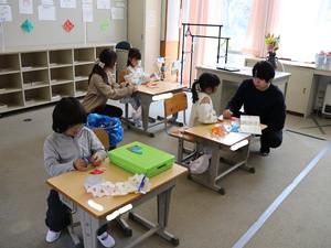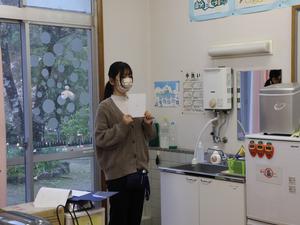 担任の先生と学校を歩いたり、お絵かきや折り紙を切ったりしました。