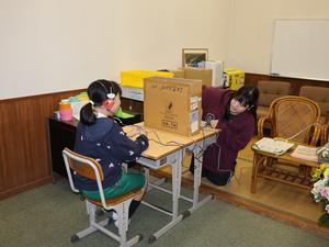 保健室では視力の検査です。