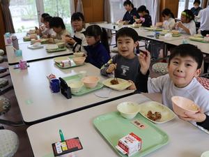 今日は、新年度になって初めての給食がありました。1年生にとっては、小学校最初の給食でしたね。