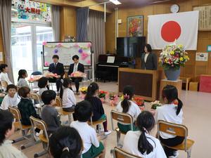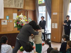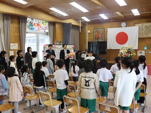 入学式では、担任の先生に名前を呼ばれて、新しい4人の新一年生が元気よく返事をすることができました。