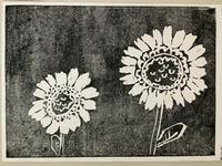 4年生は図画工作科の授業で、彫刻刀を初めて使いました。初めて使う道具でしたが、彫る所に合わせて、彫刻刀の種類を変えるなど工夫をしていました。刷ってみて、色を塗ると雰囲気のある素敵な花ができました。