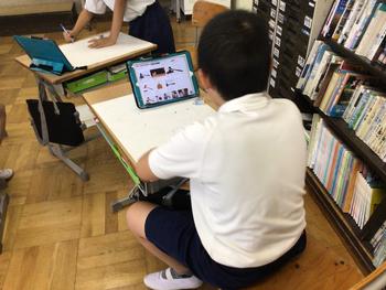 「上学年になったからには、リアルさも追求したい!」と考え、タブレットで写真を検索したり、描きたいポーズを自分が取り、それを友達に撮ってもらったりし、試行錯誤をしています。