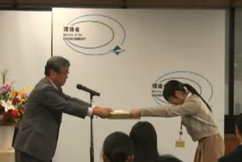 本校からは、2名の代表児童が参加しました。表彰後には、活動内容「守ろう!野鳥がすみ続ける『ふるさと生平』」を発表しました。