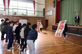 生平小学校では毎年、「心の鬼を退治しよう」というテーマで節分の時期に全校で豆まきを行っています。鬼役をやってくれていた5年生は、どの子も迫真の演技で、豆を投げる他の学年の子供たちも気合が入りました。気が緩むと、ついつい自分の悪い面が出てきてしまうものです。この行事を通して子供たちが、自分を見つめ直し、苦手な所は克服しようと頑張りながら、新しい学年に向けてすすんでほしいと思います。