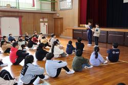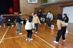 ふれあいタイムに体育館で全校レクリェーションを行いました。今回は、体育・保健委員会による企画で、震源地ゲームを楽しみました。震源地がだれかをオニに知らせないように注意しながら、みんなで協力してポーズを変えます。大胆なポーズを決めるチームもあって、みんな笑顔で楽しんでいました。
