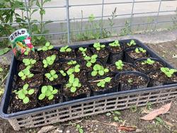 6年生の学級園では、ジャガイモとホウセンカを育てています。最近、芽を出し、順調に育ってきました。これから、理科の授業で植物のからだのつくりについて勉強していきます。実際に、植物を使って実験することができるので、とても楽しみです。