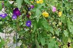 校内のイチョウの木が少しずつ色づいてきました。そんな中、写真の通りアサガオとヘチマ、マリーゴールドは夏の植物ですが、まだまだ元気です。マリーゴールドには、カマキリが活発に活動しています。少しずつ季節は移ろいでいますが、植物たちは夏の名残を留めながらも、少しずつ秋の気配を受け入れているようです。