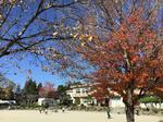 運動場の木々が赤や黄色に色付いて、秋の深まりを感じます。