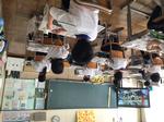 学校の中庭で餅つき体験を行い、その後教室で飾り付けをしました。