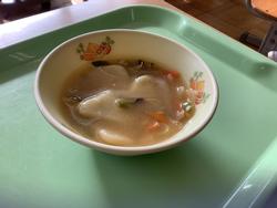 今日の給食では「すいとん」が提供されました。もちもちした食感を味わいながら、味覚を通して給食の歴史を感じることができました。