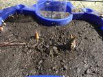 1年生が世話をしているチューリップの芽が出てきました。