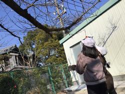 4年生は、1年を通じて校庭の植物を観察しています。今日は、風もなく穏やかな天気だったので、じっくり観察することができました。春、夏は緑の葉が生い茂っていた木々も、秋、冬になると枯れ落ち、細い枝だけになっています。枝の先をよく見ると、新しい芽がそっと顔をのぞかせています。まだまだ寒い日が続きますが、サクラやモクレンなどの新しい芽がこれからどんどんふくらんでいくのが楽しみです。【文責 石川】