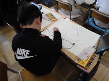 4年生は今、読書感想画に取り組んでいます。担任の読み聞かせを子供たちはメモを取りながら聴き、一番心に残った場面を、画用紙いっぱいに表現しました。次は、絵の具で彩色していきます。思い思いの感想画、丁寧に仕上げていきたいです。