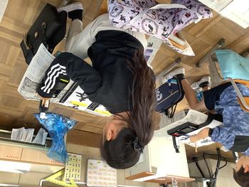 書写の授業では、校内書き初め会に向けて練習をしています。長い半紙に苦戦をしながら一生懸命取り組んでいます。また、線の太さや画の長さを意識するなど今までの学習を活かして書こうとする姿も見られました。校内書き初め会当日、自分が納得できる字を書けるように練習できるといいですね。