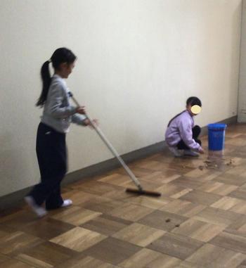 「上から下へ、奥から手前へ」を心がけて集中して隅々まで綺麗にすることができました。教室も心もぴかぴかになり、気持ちよく冬休みを迎えられそうです。