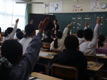 本日、校内書き初め展と3学期の授業公開を行いました。保護者が見守るなか、手を挙げて意見を発表したり、ノートに書きこんだりと、一生懸命授業に取り組む姿が見られました。寒い日が続きますが、来週からも元気いっぱいに頑張れるとよいですね。