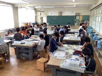 4年生は図画工作科で「いろいろ絵具研究所」の学習がスタートしました。ビー玉やストロー、歯ブラシなどを使い、色の付き方を確かめ、どんな表現ができるかを思い思いに試す時間となりました。「これ使えそう」「こんな形にしたら面白いかも」と組み合わせや形を変えながら工夫する姿がたくさんありました。これからの作品作りが楽しみです。
