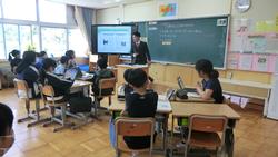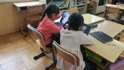 教室でタブレット端末を用いて「デジタルたんけんカード」を進めたりしていました。