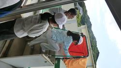 今回は、地震の後に理科室から出火したため体育館に避難するという想定でした。