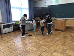 6年生が優しく掃除のやり方を教えてくれています。