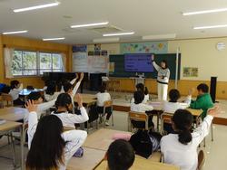 タブレット端末や電子黒板を活用した授業を見ていただきました。