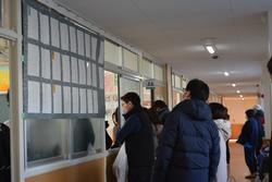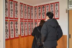 各教室廊下には、1月8日の校内書き初め大会で書き上げた作品が展示されています。