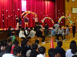 各学年からは、卒業生に向けて、感謝の言葉や歌、踊り、寸劇などの出し物がありました。