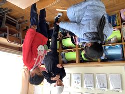 学校の中を見て回り、手すりや段差等を確認し、「どうしたら安全に過ごせるか」考えます。