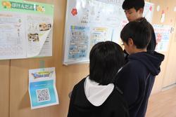学校の様々な場所に設置されたQRコードを見つけ、縦割り班で相談しながらクイズに答えていきました。