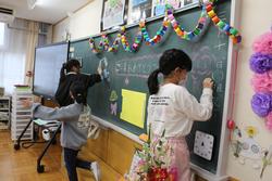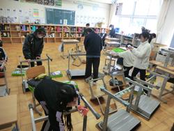 午後から4,5年生が卒業式予行の準備を行いました。