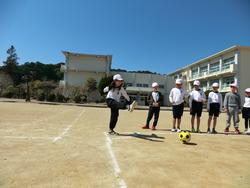 ボールを蹴る練習や、一塁に走る練習などを行いました。