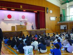 朝会の時間に、保健給食委員会から「竜谷小の給食」について発表がありました。
