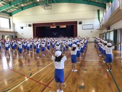 今月の大運動会に向けて、合同練習が始まりました。今日の1,2年生の合同練習では、ラジオ体操とダンス練習を行いました。ラジオ体操はピシッとかっこよく、ダンスはにこにこ笑顔でかわいく表現して踊ることができるように指導していきます。