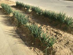 2学期に、地域の方の協力を得ながら学校の畑にねぎを植えました。
