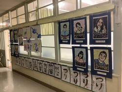 廊下には、カラフルな色遣いの作品が並び、にぎやかになってきています。