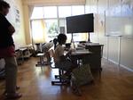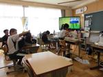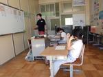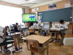 今日の授業で、5.6年生はミシンを使ってナップザックを作り、3.4年生は理科と算数、
