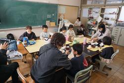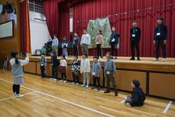 初めに、下山小からクイズと歌のプレゼントをし、盲学校の子は文化祭で披露した「半日村」の劇を披露してくれました。