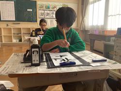 新年の始まりに、その年の抱負や目標、縁起のいい言葉などを書く書き初め大会。もうすぐ始まる新年に向け、2学期の残りの日々で頑張りたいことや来年頑張りたいことを考え、字に思いを込めながらていねいに取り組む様子が見られました。